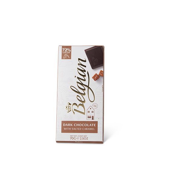 72% Cocoa Chocolate Bar with Salted Caramel – 70g