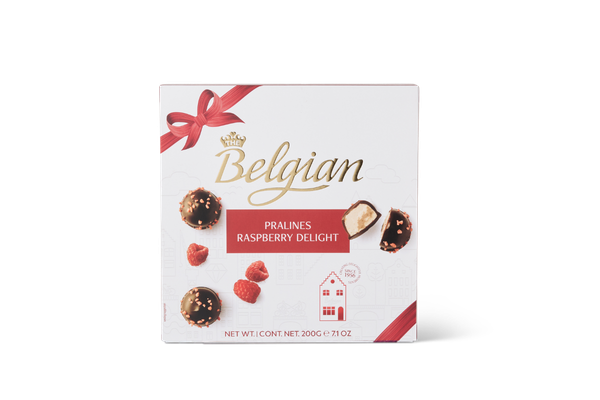Een zachte, fruitige frambozenmousse omhuld met donkere chocolade. Intens geluk