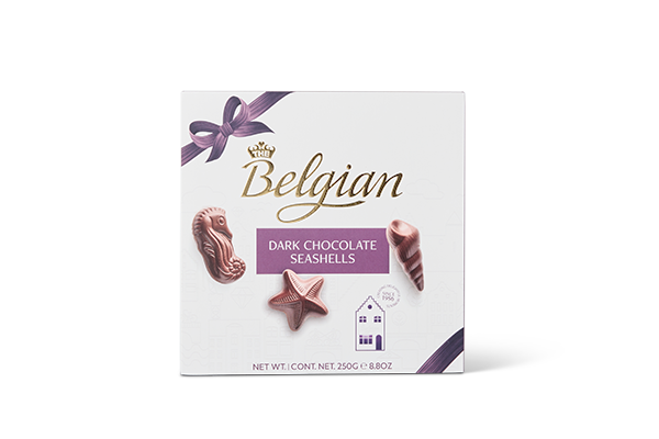 Especially created for the dark chocolate lovers: seashells with a creamy hazelnut filling and a dark chocolate shell.