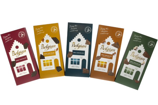 Explore a world of flavours with our 400g World Map Chocolate Bar. It features animals and famous landmarks from different continents, all crafted in delicious fine chocolate.