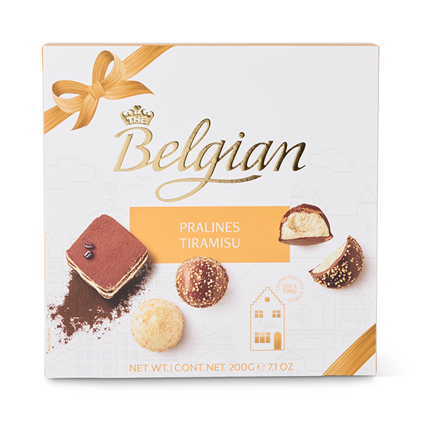 Een vulling van smeuïge tiramisucrème in een jasje van melk, witte of donkere chocolade. Genieten geblazen